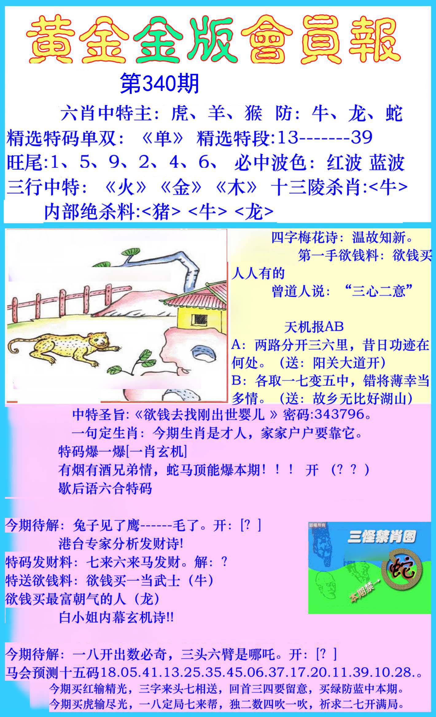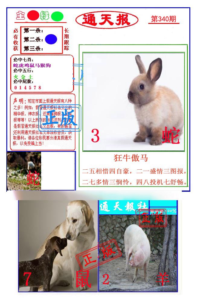 340期金牌⑥肖【鸡兔马鼠狗牛】开:0准 |