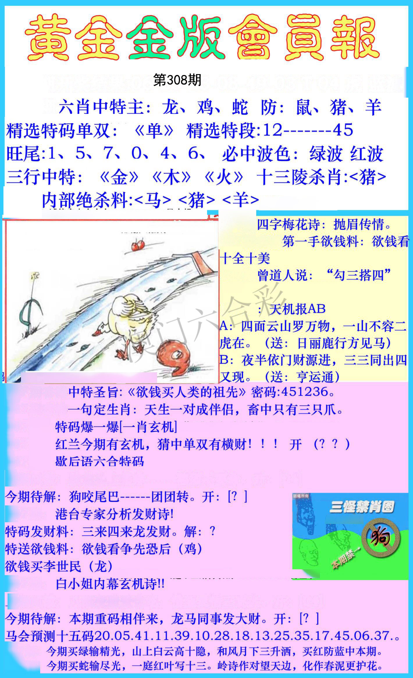 308期金牌③肖【鸡龙猴】开:0准 |